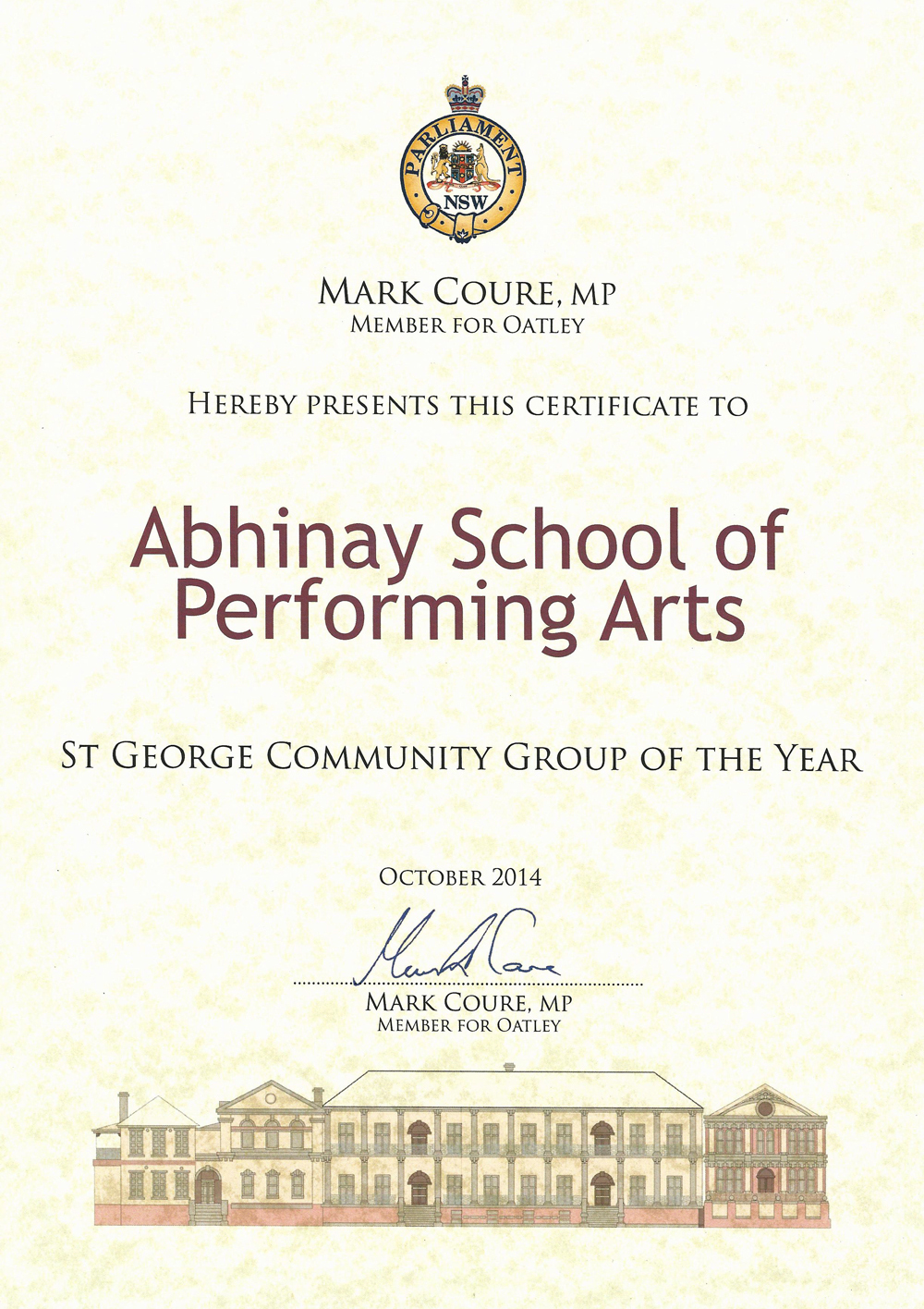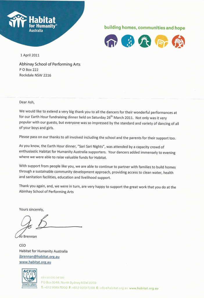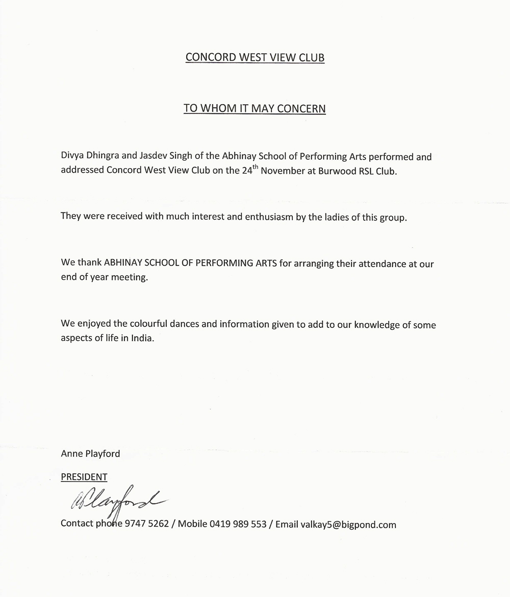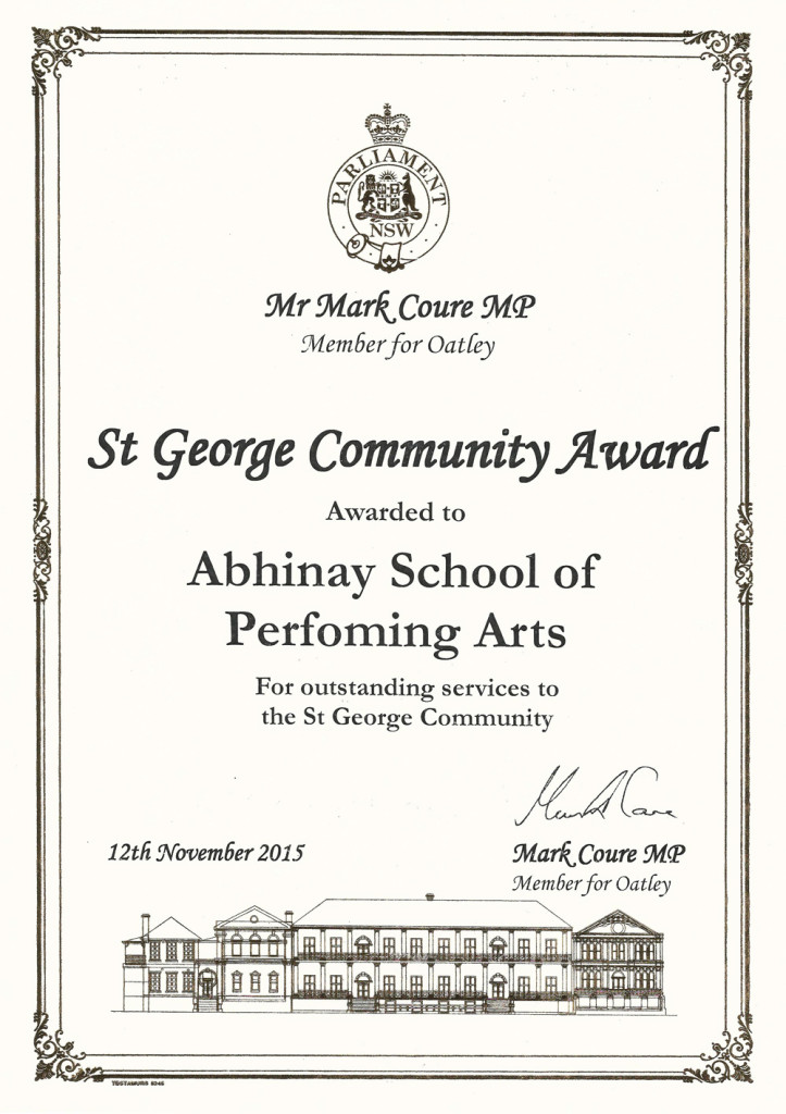 I hope that Abhinay would reach the heights of the performing arts in Australia and I would be following your activities more closely. I wish you all the success in your future endeavours.
